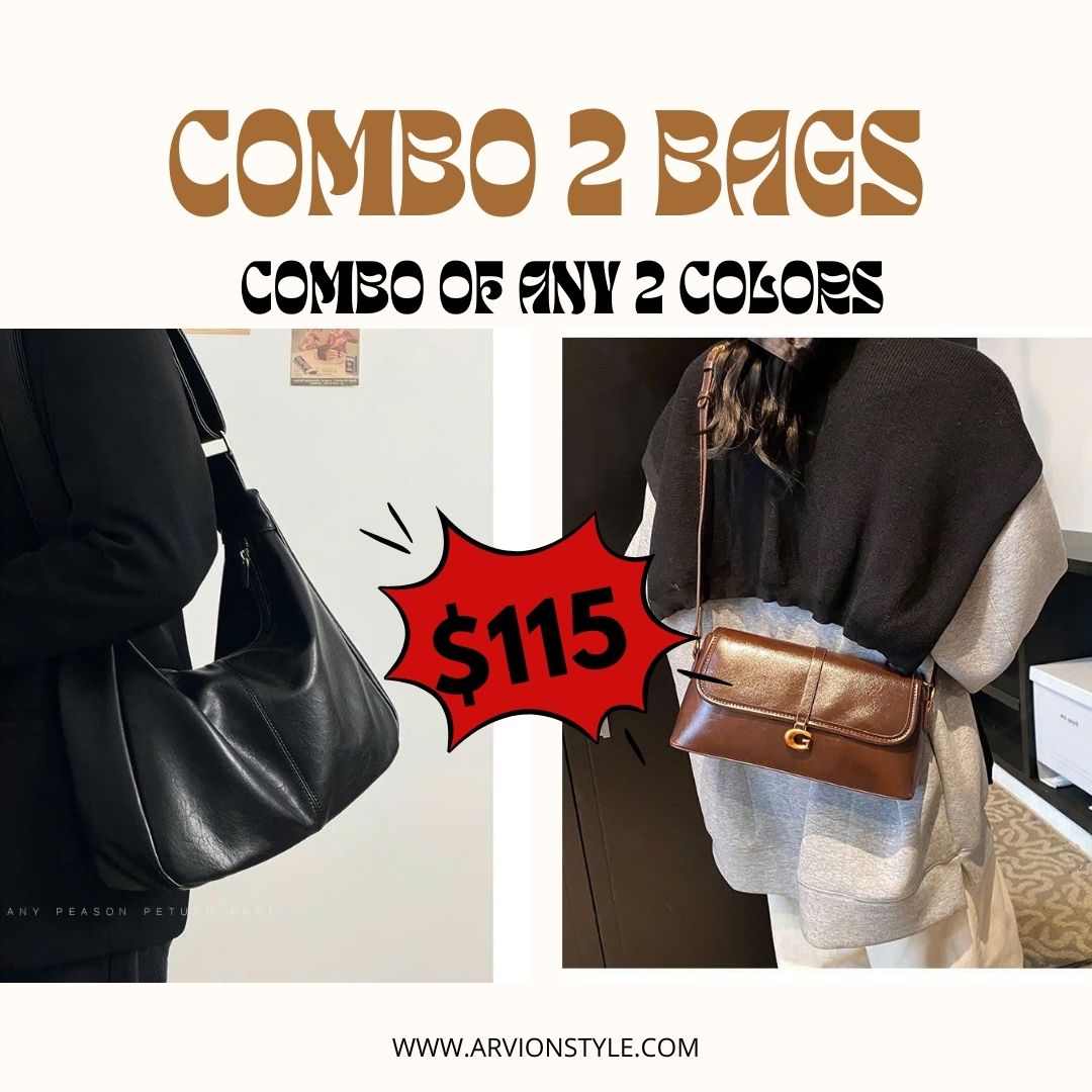 With two versatile colors and two unique styles, this combo allows you to mix and match with any outfit or occasion. Whether you want something compact and light or a bag with more capacity, this set has everything you need.