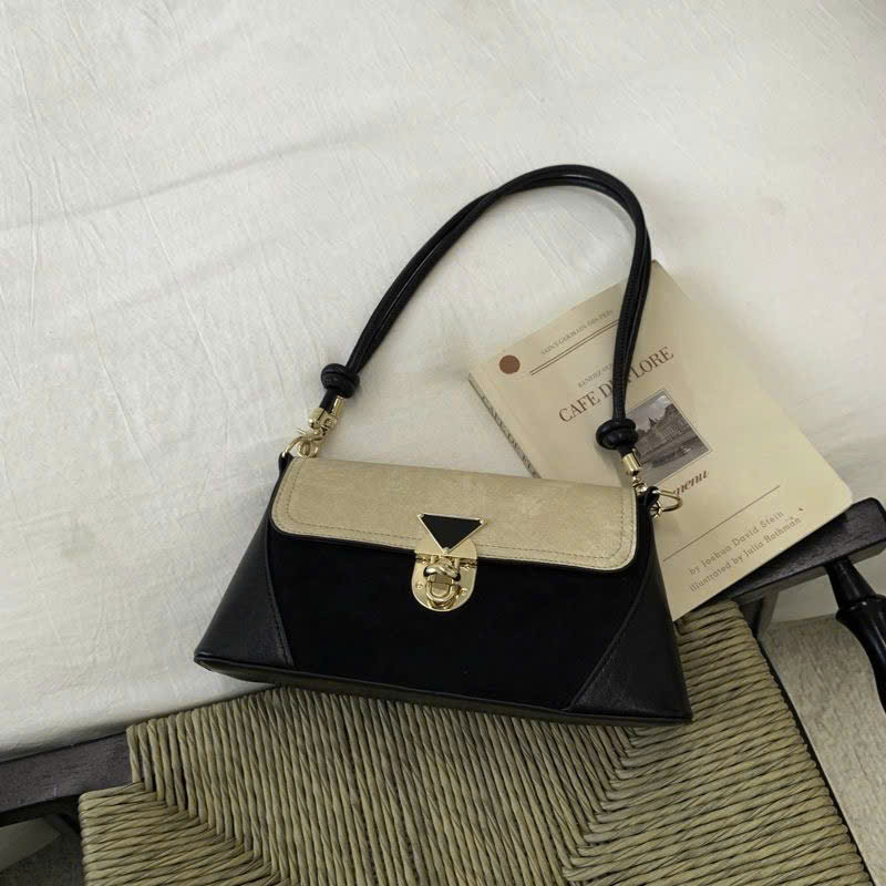 FREESHIPPNG - This handbag features a sophisticated color-block design combining cream, warm brown, and deep chocolate tones, creating a visually elegant and modern look. The flap is crafted from a soft, suede-like material, adding texture and depth, while the body of the bag uses smooth leather for structure and durability.