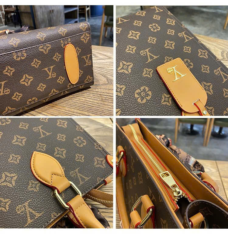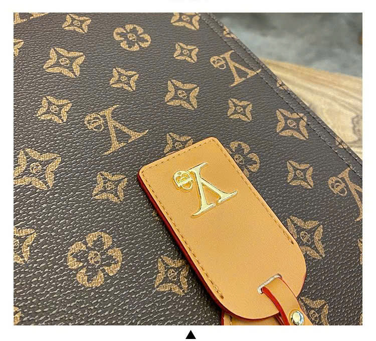 This elegant tote bag is designed with a luxurious monogram canvas featuring a rich blend of coffee brown and beige tones, giving it a timeless and sophisticated appeal. The structured silhouette provides both style and practicality, making it the perfect everyday companion for work, shopping, or casual outings.