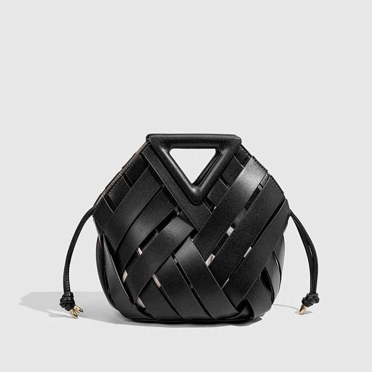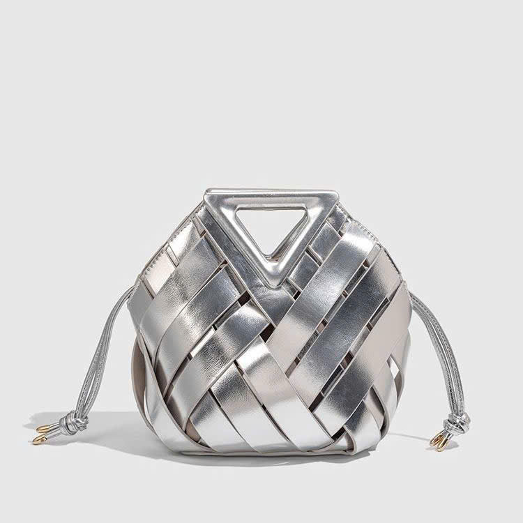 The Vela Woven Knot Bag is a bold and contemporary statement piece, defined by its distinctive hand-woven structure and geometric triangular handle. Crafted from high-quality faux leather strips intricately interlaced together, this bag showcases a sculptural, artisanal look that feels both modern and luxurious.